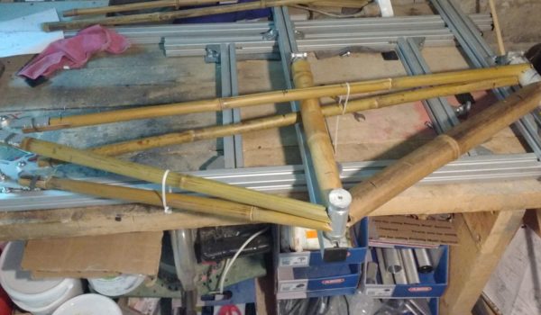 - Utilisation de bambous différents pour le tube supérieur et les haubans.
