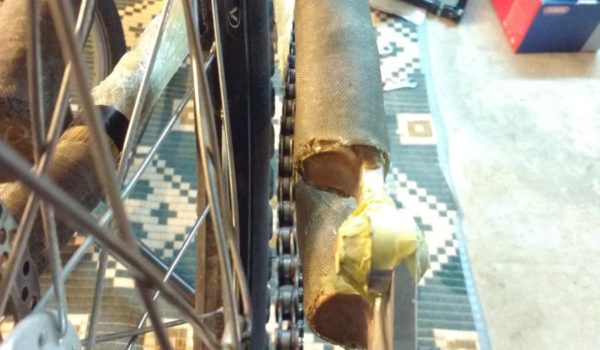 Au cours de la fabrication, j’ai choisi de remonter le tube horizontale pour avoir plus de rigidité dans la direction, mais ce choix s’est avéré peu judicieux car l’enjambement est un peu plus difficile !